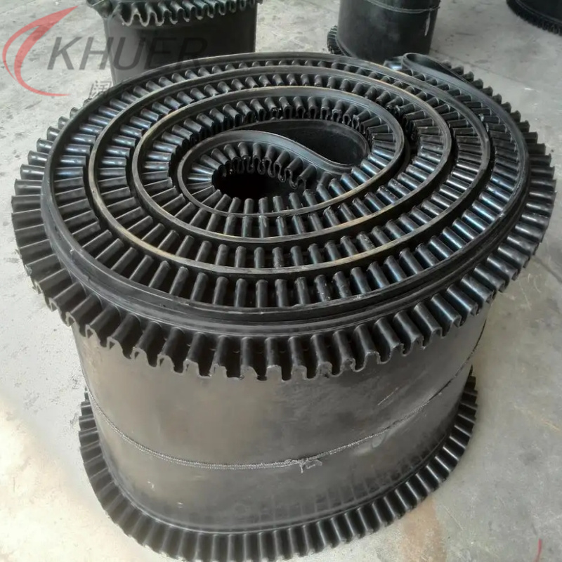 Sidewall: high tensile strength, hot vulcanization with base belt, height up to 40-80mm, fabric reinforcement built in sidewall
